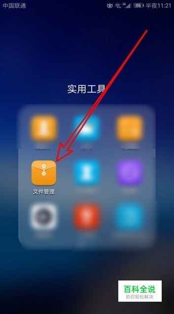 我们在手机上左右的滑动屏幕,在屏幕上找到“实用工具”文件夹,在打开的文件夹中,找到“文件管理”的图标。