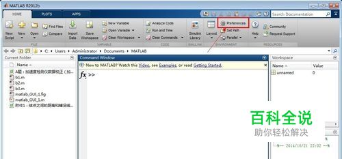 打开MATLAB R2012b软件,点击主界面上方的菜单栏的“Preferences”按钮。