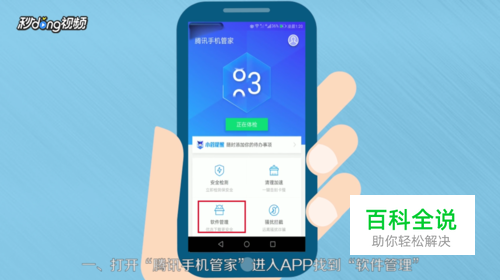 打开“腾讯手机管家”APP,找到并点击“软件管理”
