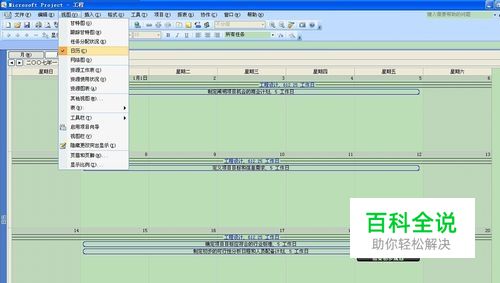 “日历”视图: “日历”视图是主要显示一个周或一个月内的项目信息。任务条形图将跨越任务日程排定的天或星期。使用这种视图格式,可以快速地查看项目的日程安排。