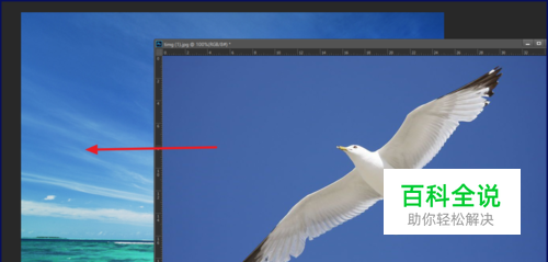 在ps中打开两张图片,将一张图片用选择工具放到另一张图片上