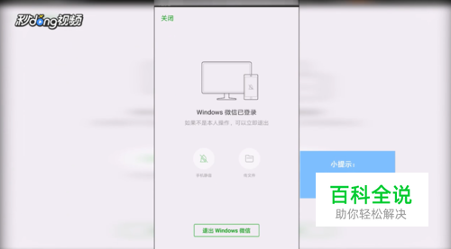 点击该提示,出现退出windows微信页面,点击左侧的手机静音按钮,这时页面电脑上方多了一个手机静音的图标。