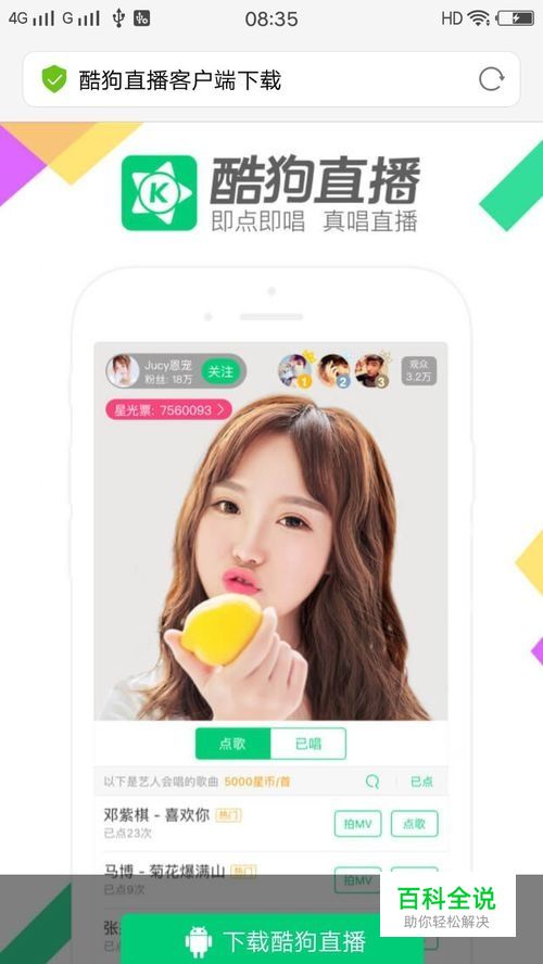 手机浏览器打开酷狗直播网站后,都是会直接跳转到手机版,要求我们下载酷狗直播,那么怎么样在手机上看网页版本呢,小编手把手教您。
