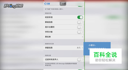 打开“设置”,找到“信息”并进入,找到“保留信息”并进入。