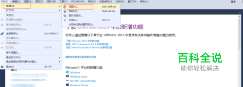 第一步,本方法是用后端语言 C#语言实现的。通过借助 Visual Studio 2013编辑器来实现九九乘法表。首先打开安装在电脑中的Visual Studio 2013,点击左上方的 文件菜单,点击 新建,新建项目。在弹出的新建项目窗口中,新建一个项目,选择 控制台应用程序,并 命名。点击 确定。如图所示: