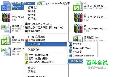 选择需要打开的文件, 按右键》打开方式》选择程序