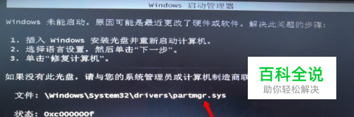电脑缺少核心驱动文件时,在开机启动后会报出相应的错误,类似下图。 从图片中可以看到缺少partmgr.sys文件