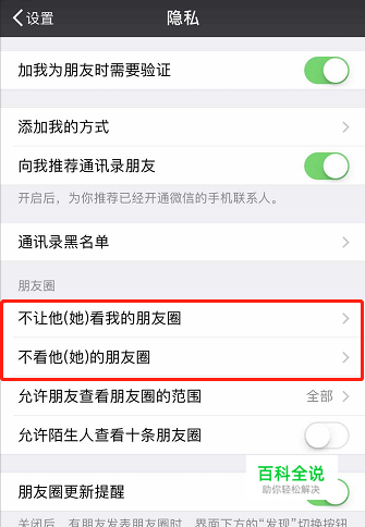 进入“不看对方的朋友圈”和“不让对方看我的朋友圈”的设置;