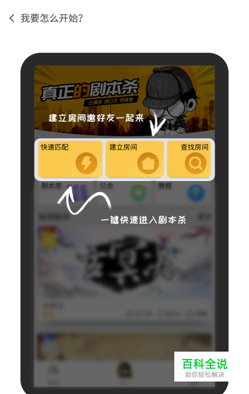 第一步:建立房间 可以在主页面上点击“快速匹配”,一键快速进入剧本杀; 也可以点击“建立房间”,建立房间邀请好友一起进行游戏;