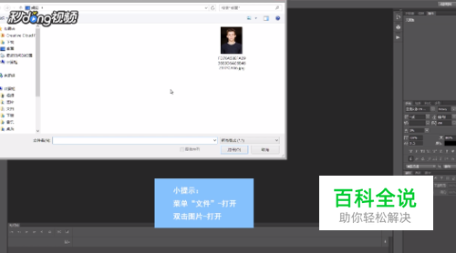 打开ps,点击菜单“文件”,点击打开,双击需要修改的照片。