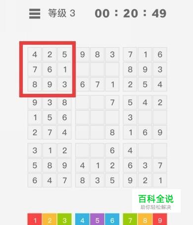 在一个数独题目中,使用的是9个不同的9*9小区构成的区域,那么这一个小区也是满足了游戏中的1—9之间的数字哦。
