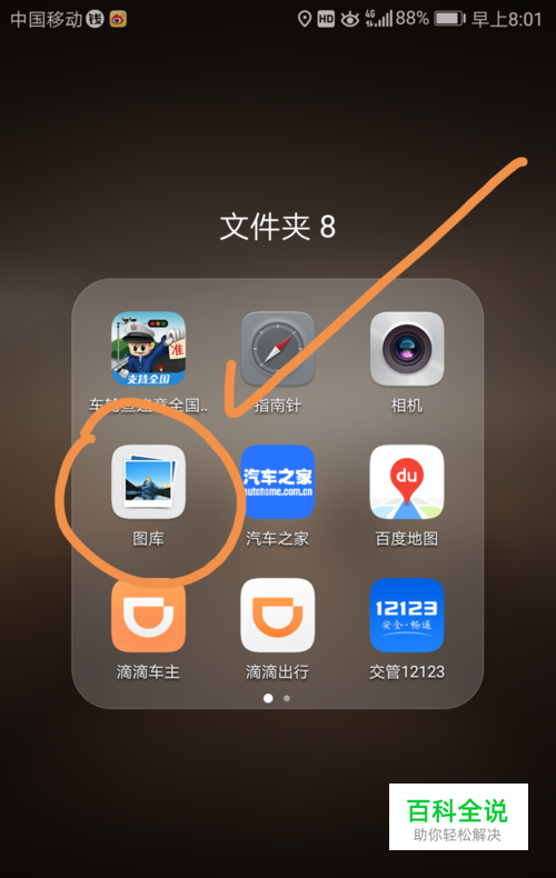 首先,点按手机中的图库标志。