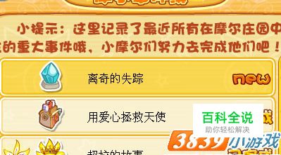 打开摩尔庄园事件簿 选择新任务摩尔庄园离奇的失踪