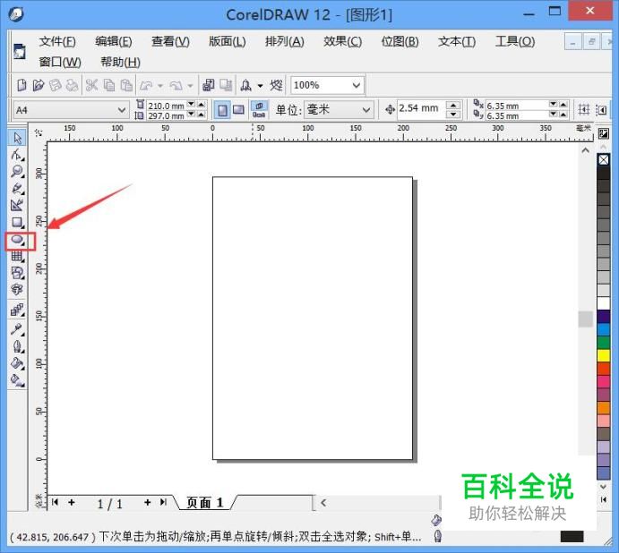 打开cdr这款软件之后,然后在左侧的工具箱内找到椭圆形工具,如图所示: