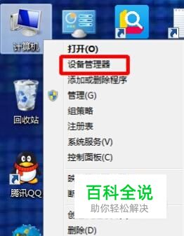 首先要找到设备管理器,找到“我的电脑”点击鼠标右键选择第二栏即设备管理器。