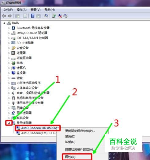 在打开的设备管理器列表里面找到显示适配器,右键单击属性,打开属性之后选择更新驱动程序。