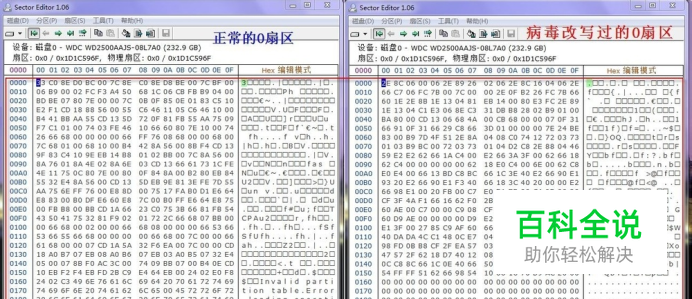鬼影病毒,因为其隐藏性比较好,其编写思路有可能被未来的病毒编写者看好,成为今后流行病毒的“潜力股”。 近期流行的那两个鬼影变种,就其“隐藏性”而言,应该还不算很好。这两个鬼影病毒居然明目张胆地往用户桌面添加IE快捷图标;且在系统启动后,细心的用户还会在windows目录下发现反复出现的病毒文件alg.exe或ali.exe。个人觉得这还算不上真正的“鬼影”。今后出现的“鬼影病毒”有可能会去掉这些张扬的成分,成为真正的鬼影。 由此便可引出一个普通用户最关心的问题:我怎么知道自己的电脑是否中了鬼影病毒?或问:中了鬼影病毒后我能看到些啥典型症状? 鬼影病毒的寄生地位于硬盘主引导扇区的“主引导记录(Master Boot Record),简称:MBR。要看“中毒后的典型症状”,应查看主引导扇区的内容。主引导扇区位于硬盘的0面0道1扇区。使用不同的工具查看这个扇区,有一个小小的问题需要注意:主引导扇区号可能有差异:用WinHex看到的主引导扇区序号与我们经常说的主引导扇区序号一致(即:0面0道1扇区);但用SectorEditor看到的主引导扇区是0面0道0扇区,而不是我们通常说的“0面0道1扇区”。用SectorEditor看到的0面0道的64个扇区编号为0-63。 查看主引导扇区,对于一般用户来说无异于看天书。其中的内容全部为十六进制数字! 本人也是菜鸟,完全读不懂那天书般的MBR内容。但这并妨碍我通过查看MBR判断电脑是否中了鬼影病毒。基本思路就是:先大体上了解一下正常的主引导扇区内容。正常的主引导扇区内容如图1。 图1中红色高亮部分就是正常的“主引导记录”(即:MBR);绿色高亮显示的是正常的“硬盘分区表”(DPT);灰色高亮显示的是“扇区结束标志”。知道了正常MBR是啥样的,就有了比较标准。通过比较,就不难发现MBR的异常。 中鬼影病毒第二个变种前后的MBR比较见图2。 这个新变种除了改写MBR外,还改写了0面0道内的37个扇区!中此病毒前后的0面0道2扇区(SectorEditor标为0面0道1扇区) 中此毒前后的0面0道39扇区(SectorEditor标为0面0道26扇区;这个“26”为十六进制数)内容的比较见图3。 此毒改写的扇区数较多,在此就不一一截图了。 此外,我曾用SectorEditor查看过不同电脑0面0道各扇区内容,在此大致交待一下,可供中鬼影病毒后判断与处理主引导扇区及0面0道其它扇区时参考:1、我见过的多数电脑:(1)0面0 道0扇:MBR+DPT(2)0面0道1-61扇:空(内容全部为0)(3)0面0道62-63扇:有内容。不要更改。2、某些品牌电脑: 见过一台DELL品牌机,上述内容除第(1)、(3)部份与多数电脑相同外,第(2)部份中 10号扇区有内容。 另一个例子就是我那个ThinkpadT60p 笔记本。可能是因为其ThinkVantage蓝键的特殊引导需要,上述第(2)部份中 1-12扇区也有内容。