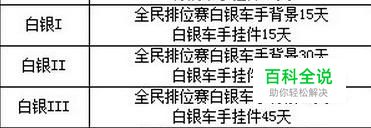 白银段位分了三个小段,给出的奖励是白银车手挂件与背景,分别是15天,30天,45天