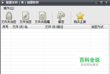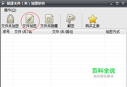 在主界面可以看到文件夹加密、文件加密、文件夹隐藏、解密的按钮,我们选择文件加密,如果所示。