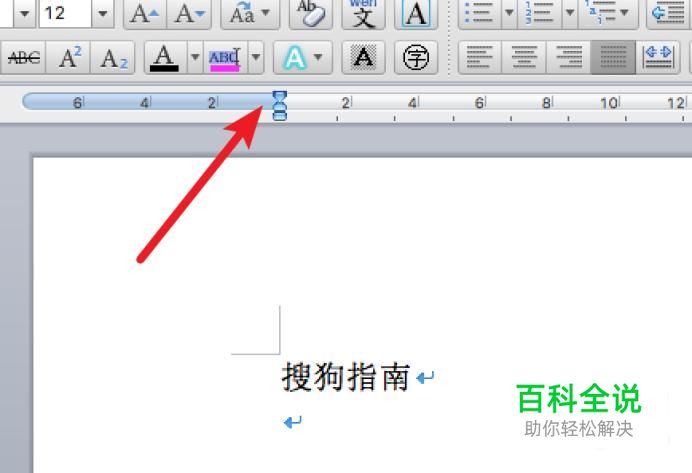 要利用标尺来设置缩进,我们先按回车另起一行,然后点击标尺最上方的箭头。