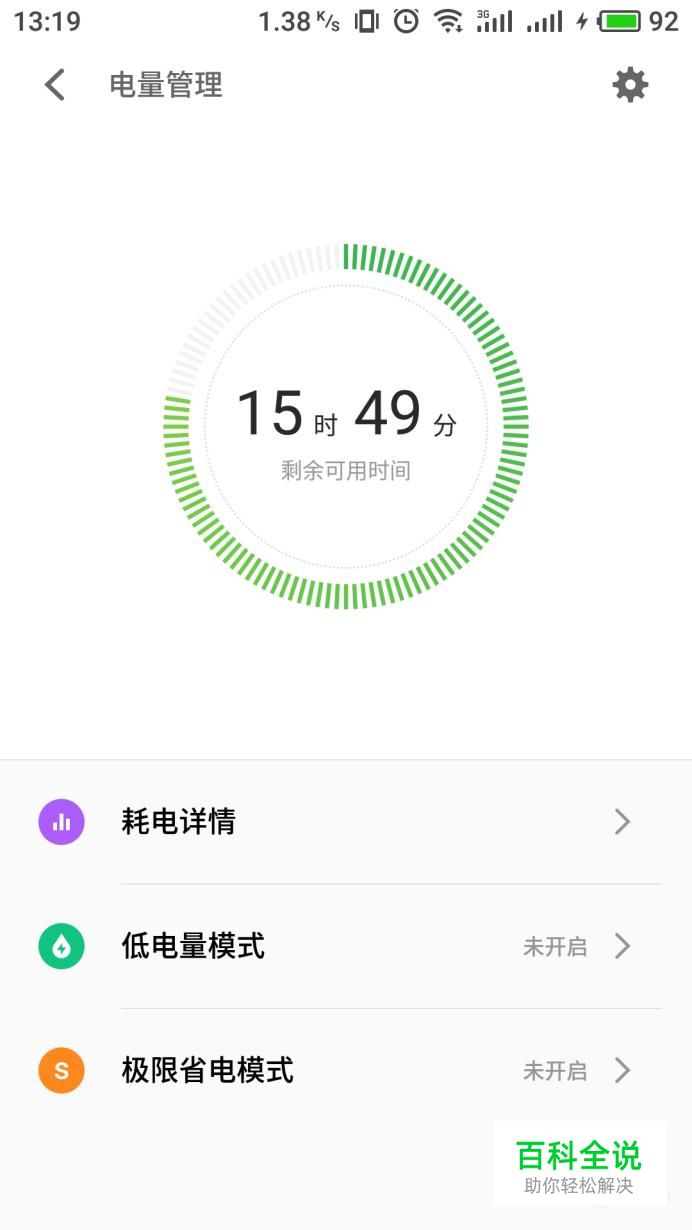 在电量管理界面我们可以切换电量模式,点击右上角“齿轮”进入设置界面。