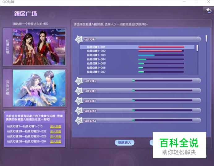 然后点击跨区广场,就会出现如下图页面,然后自己找一个仙灵幻境进入。