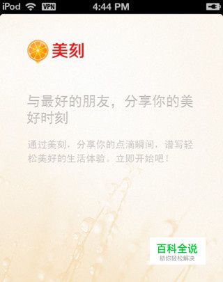下载安装之后打开美刻,第一屏跳出的是一个橘子的切面,这也是美刻的LOGO。美刻的宣传语是“与你的最好朋友,分享美好时刻”。