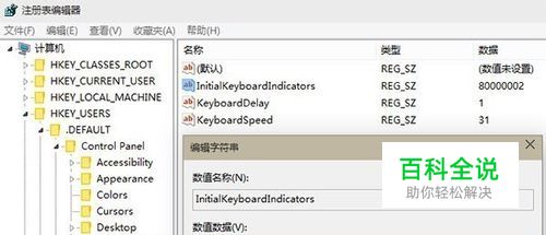2、定位到HKEY_USERS\.DEFAULT\Control Panel\Keyboard