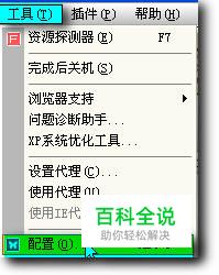 打开你的迅雷,在"工具"菜单里选择"配置"项,如图: