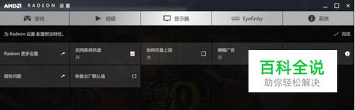 点击左上角的“Radeon更多设置”就会弹出传统AMD显卡控制台,在这里面选择“游戏”下面的“AMD Radeon Dual Graphic”选项就可以设置双显卡交火了。