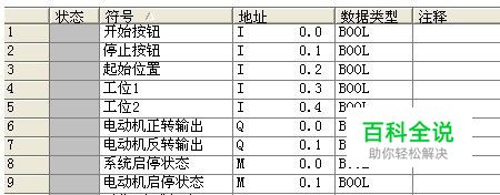 系统资源分配: 整个系统有5个数字输入量,2个数字输出量,若干个位存储器。 符号表中一般定义好数字输入量和输出量,对于位存储器的定义可以在符号表中定义,可以不定义。 这里为了增加程序的可读性和可维护性,选择定义在符号表中定义位存储器,输入输出量。