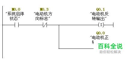 小车的运动控制程序: 小车的运动包括:前进、后退和停止。小车的运动用交流电动机驱动,则使用两个输出点控制电动机的运转。电动机正转输出Q0.0,电动机反转输出Q0.1。 Q0.0=1;Q0.1=0;小车前进; Q0.0=0;Q0.1=1;小车后退; Q0.0=0;Q0.1=0;小车停止; 鉴于Q0.0,Q0.1不能同时为1,则设置一个位存储器描述电动机的运行状态。根据位存储器控制电动机。增加M0.1电动机启停状态和M0.3电动机方向标志。