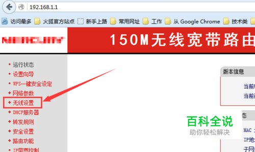 首先 登录到无线路由器的管理界面,登录的方式可以查看路由器背面的说明(一般地址都是192.168.1.1或者192.168.0.1,用户名密码均是:admin)。点击左侧导航栏中的 无线设置。