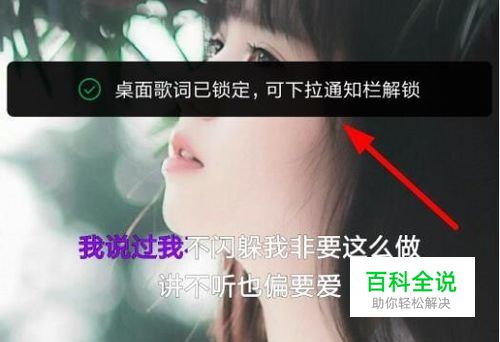 现在显示桌面歌词已锁定我们可以下拉通知栏解锁。