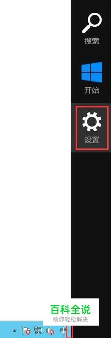 在server2012系统中将鼠标指针移至任务栏右侧,在弹出的操作栏中单击“设置”选项。