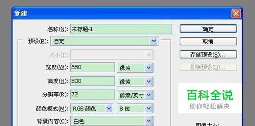 首先打开Photoshop软件,新建650x500像素图层,如下图: