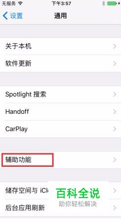 打开手机设置,进入设置后点击【通用】选项,接着点击【辅助功能】。(如下图)