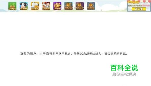 qq农场牧场打不开 提示“由于您的当前网络不稳定,导致QQ长无法进入,建议您稍后再试”