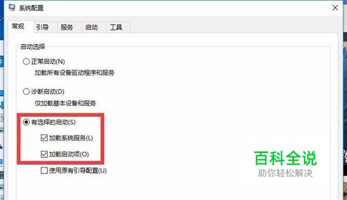 在常规选项卡中,不要选择正常启动,应为正常启动是加载所有的驱动,服务。所以会很慢。选择有选择的启动,可以在启动过程中去掉一些不必要的启动项。增加开机速度。