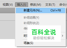 单击菜单"插入">“新建元件”(或按快捷键Ctrl+F8),在弹出的对话框中选择“按钮”元件类型并改名为按钮1。