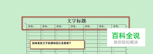 大家也许知道如何重复首行作为标题的表格,但是如果,每页还有文字标题怎么办呢?