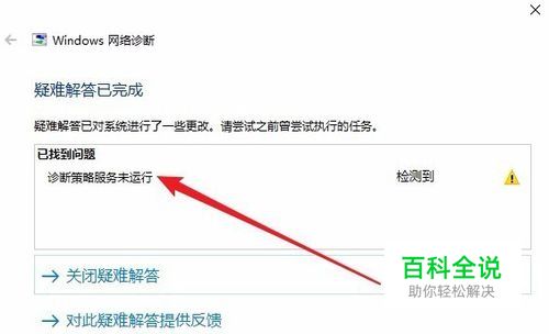 我们先来看一下Windows10系统网络诊断窗口中,检测到“诊断策略服务未运行”的提示。