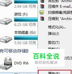 将U盘和电脑连接成功后,打开“计算机“,而后找到U盘所在的盘符,右击点属性。