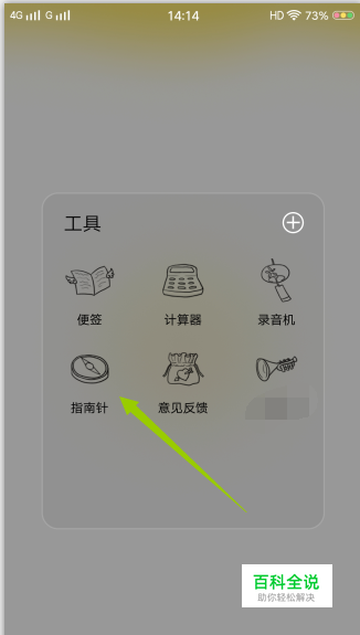 打开自己的手机,找到手机中的工具,工具里面有个指南针应用,点击它。