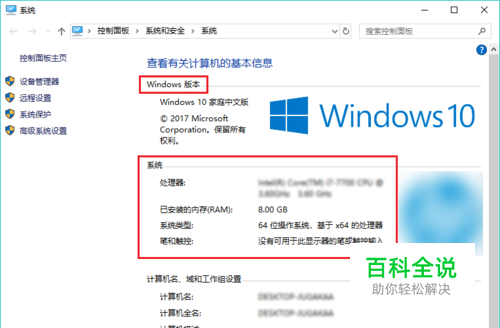 同样也能看到自己的win10电脑属性啦。