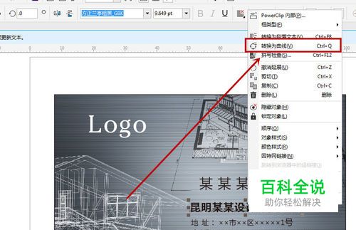 选中要转曲的文件,按右键,出现个菜单,选择转换曲线。 或者直接按快捷键CTRL+Q进行转曲