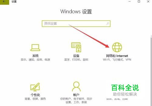 单击主页按钮后会进入到windows设置面板,此时我们单击该面板上的“网络和internet”按钮。