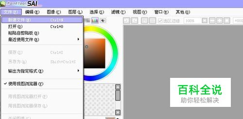 打开SAI软件后,鼠标左键在菜单【文件】>>【新建】单击,新建一个SAI文件,如下图所示。