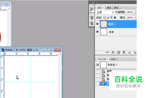 新建一个图层,点击视图-->标尺,拉出一条十字坐标参考线