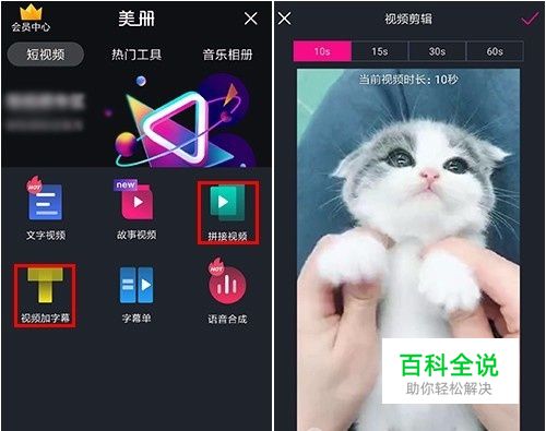 将多短视频合成一段,给视频加字幕,这两个视需求占了巧影很大比例,美册短视频专区的拼接视频,视频加字幕功能,可以满足这两个需求。 软件的操作都很简便,拿拼接视频做个演示,功能内按顺序导入要连接的视频,底部可以对视频进行裁剪,点击右上对勾进入编辑页面。